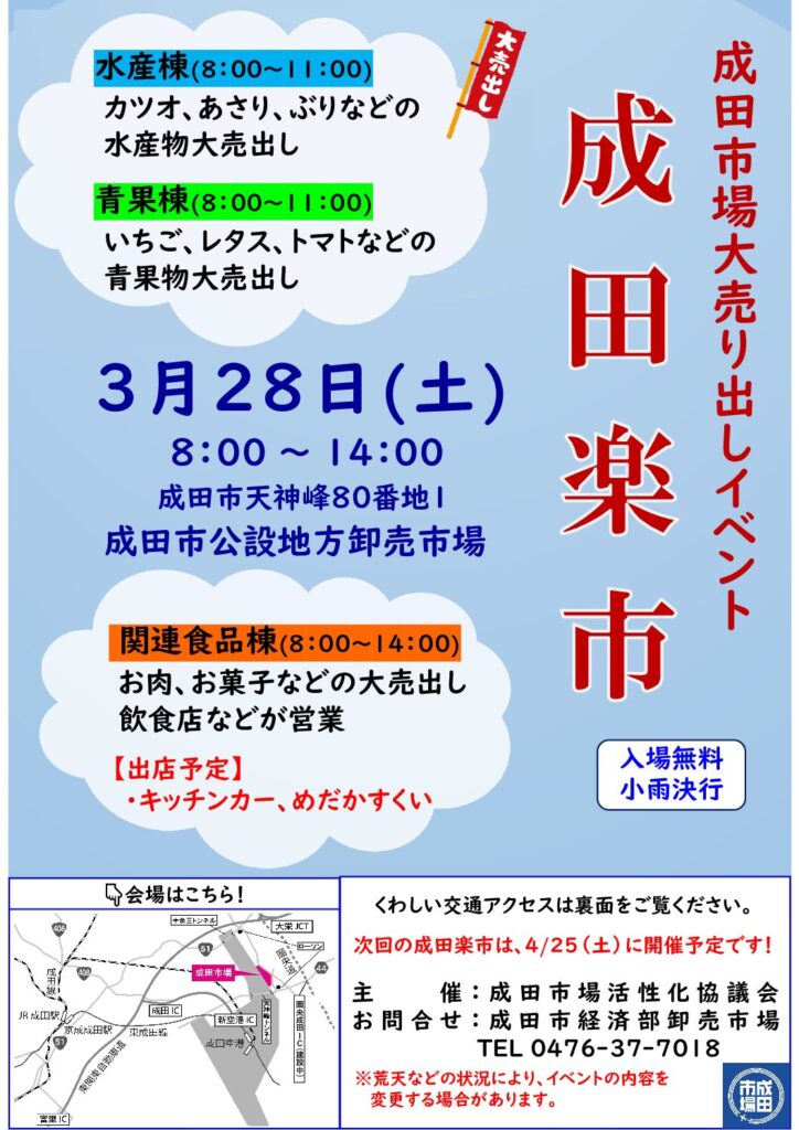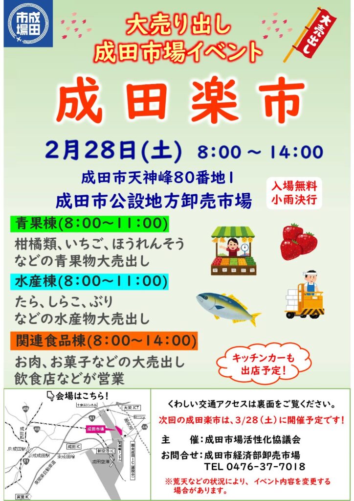 読み込み中...12月30日は成田楽市開催のため、一部青果仲卸業者は営業します。